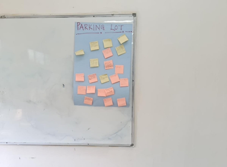 The results were immediate and encouraging. By the end of the first day, the Parking Lot had several notes posted. The trainers reviewed and addressed them the following morning, and participants continued to engage with it throughout the week.